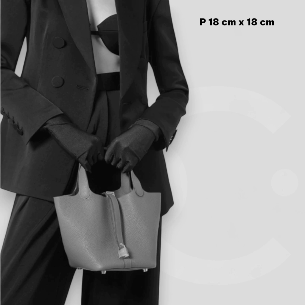 18 cm x18 cm (considerada uma bolsa P)