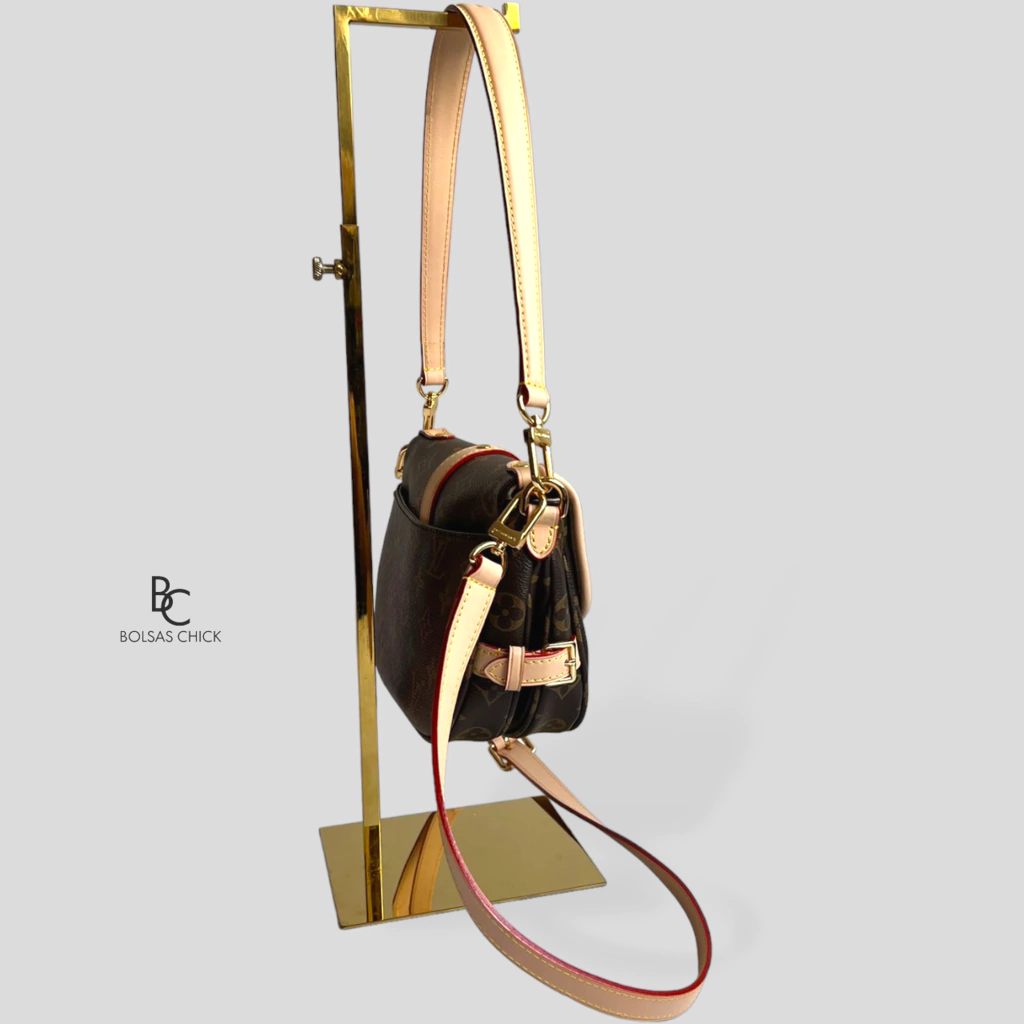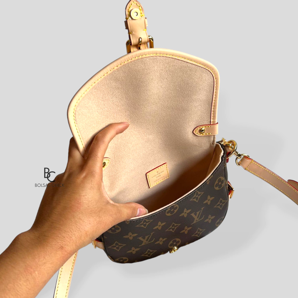 - Material: Tela monograma/Acabamentos em couro natural;